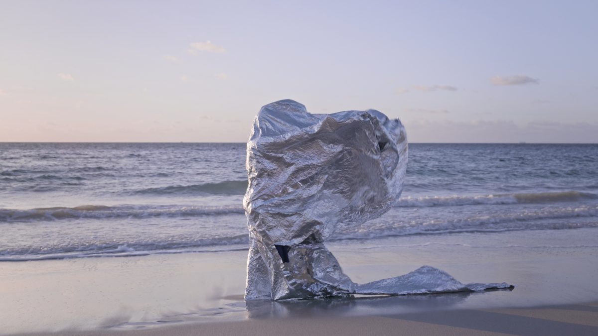Open to wind follows a singular action shaped by external forces. A figure attempts to hold an emergency blanket against the body as wind resists and reconfigures the gesture, undoing control through exposure and endurance. Intention is continually negotiated with the environment.
