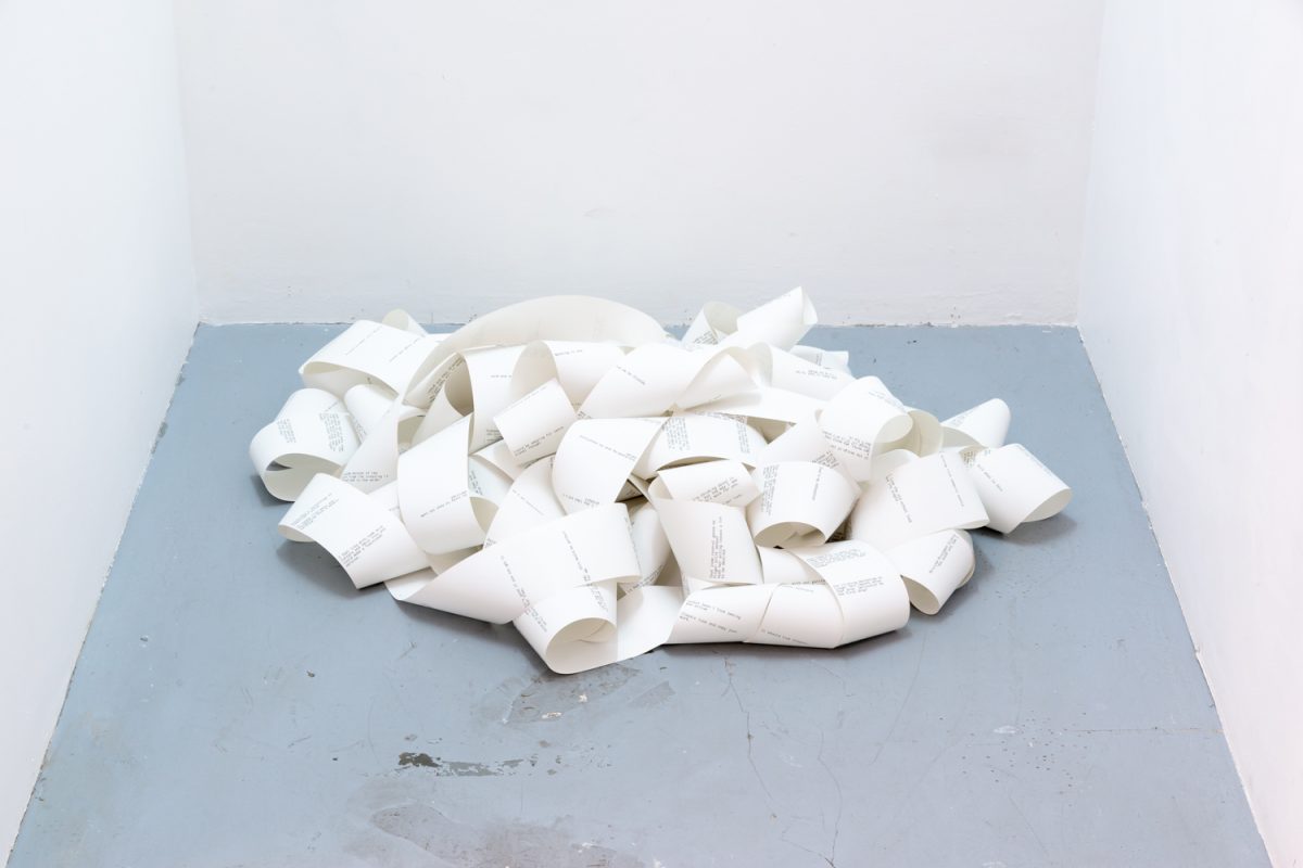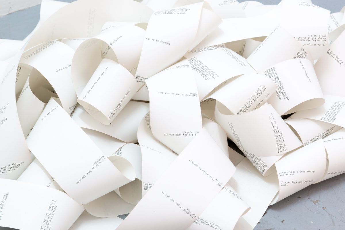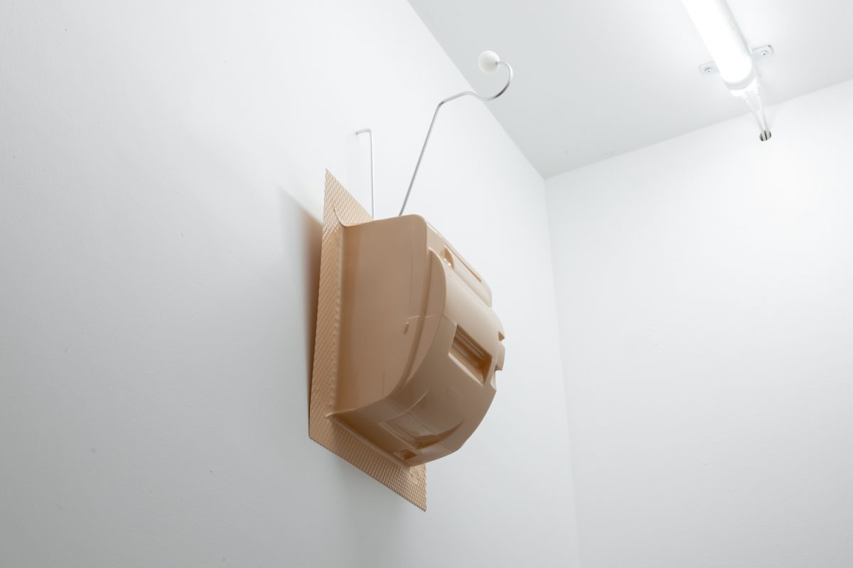 Product Development explores the entanglement of female bodies and objects. Engaging with the aesthetics of the cyborg, the work relates to Donna Haraway’s articulations of the destabilisation of fixed identity categories through critique and reimagination. Object and subject are blurred; products and female figures become less distinct, for better or worse. Incorporating video and sculptural elements, the work considers how commodification, technology, fashion, consumer devices and online commentary can both contribute to and complicate self-image and identity. The multiple figures and objects within the work emerge within a landscape of hyper-visibility, surveillance, exchange, corporate control and commodity fetishism.